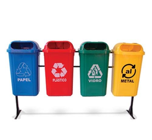 Destinados à coleta seletiva ou separação de resíduos diversos em locais internos ou externos. Produzidos em polipropileno de alta resistência e fixados em estrutura metálica, oferecem excelente durabilidade e facilidade para a descarga do material coletado. As estruturas permitem a montagem de conjuntos personalizados de acordo com a necessidade exata de cada usuário.O Kit é composto pelos seguintes itens: