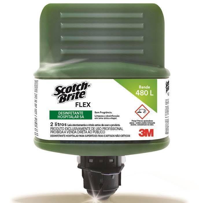 Scotch-Brite™ Flex Desinfetante Hospitalar 5A para Limpeza Profissional - Cada bombona contém 2 Litros, com diluição 1L > 240L.O rendimento total da bombona é de 480L