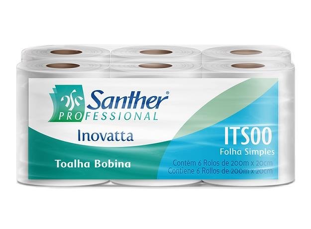 PAPEL TOALHA BOBINA PARA MÃOS 6X200M ITS00 SANTHER